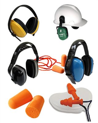 Tapones y orejeras que protegen contra el ruido excesivo.